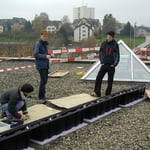 Am herbstlichen Morgen des Donnerstags, 10. November, erweiterte die Klasse des Ergänzungsfaches Physik, bestehend aus Michael Lehmann, Dimitri Kokkinis, Sandro Konatschnig, Jonathan Ringli und Nicola Sprenger unter der Leitung von Adrian Schenkel, die Photovoltaikanlage auf dem Dach ihrer Schule um 11 neue Module. Die vom Solarverein Romanshorn finanzierte Anlage hat eine maximale Leistung von rund 1.4 kW und produziert im Jahr ca. 1270 kWh elektrische Energie, was einem Drittel des Stromverbrauches eines Einfamilienhauses im Jahr entspricht. Vom Auswählen des Angebotes über das Netzanschlussgesuch beim Elektrizitätswerk bis zur eigentlichen Installation hat die Schülergruppe alles selbst organisiert und durchgeführt. Die am Projekt beteiligten Schüler beurteilen dieses als interessant und motivierend.