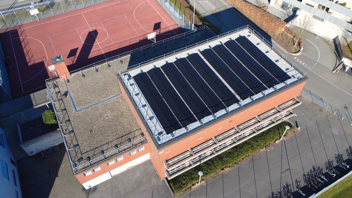 Die Anlage befindet sich auf dem Dach der Turnhalle des Reckholdernschulhauses der Sekundarschulgemeinde Romanshorn-Salmsach.